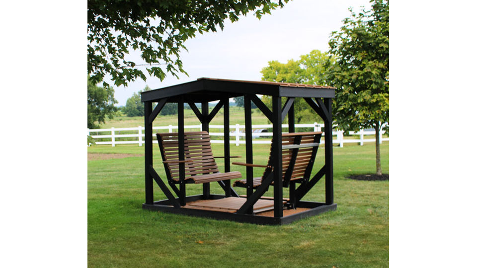 Country Gliders + Pergola with Metal Roof Set!